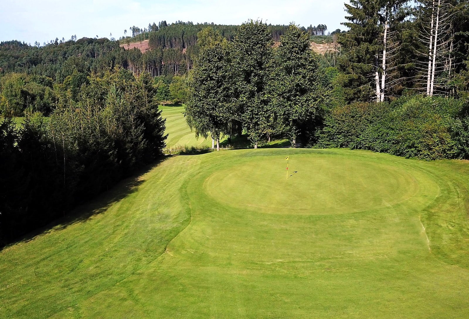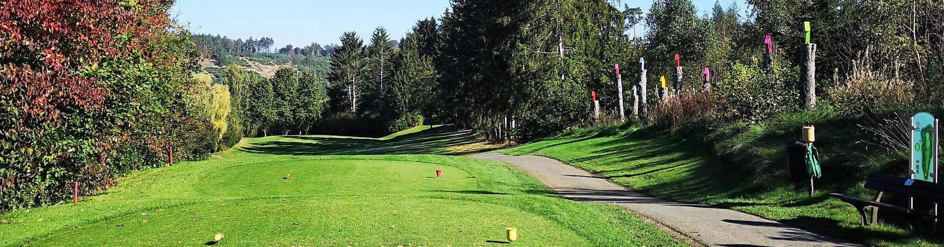 Hinter dem Grün geht es steil bergab. Hier heißt es absolute Präzision beim Abschlag. Sowohl der gute Draw als auch der gut gesetzte Fade erlauben das Anspielen des Grüns. Viel Spaß bei der Birdiejagd.