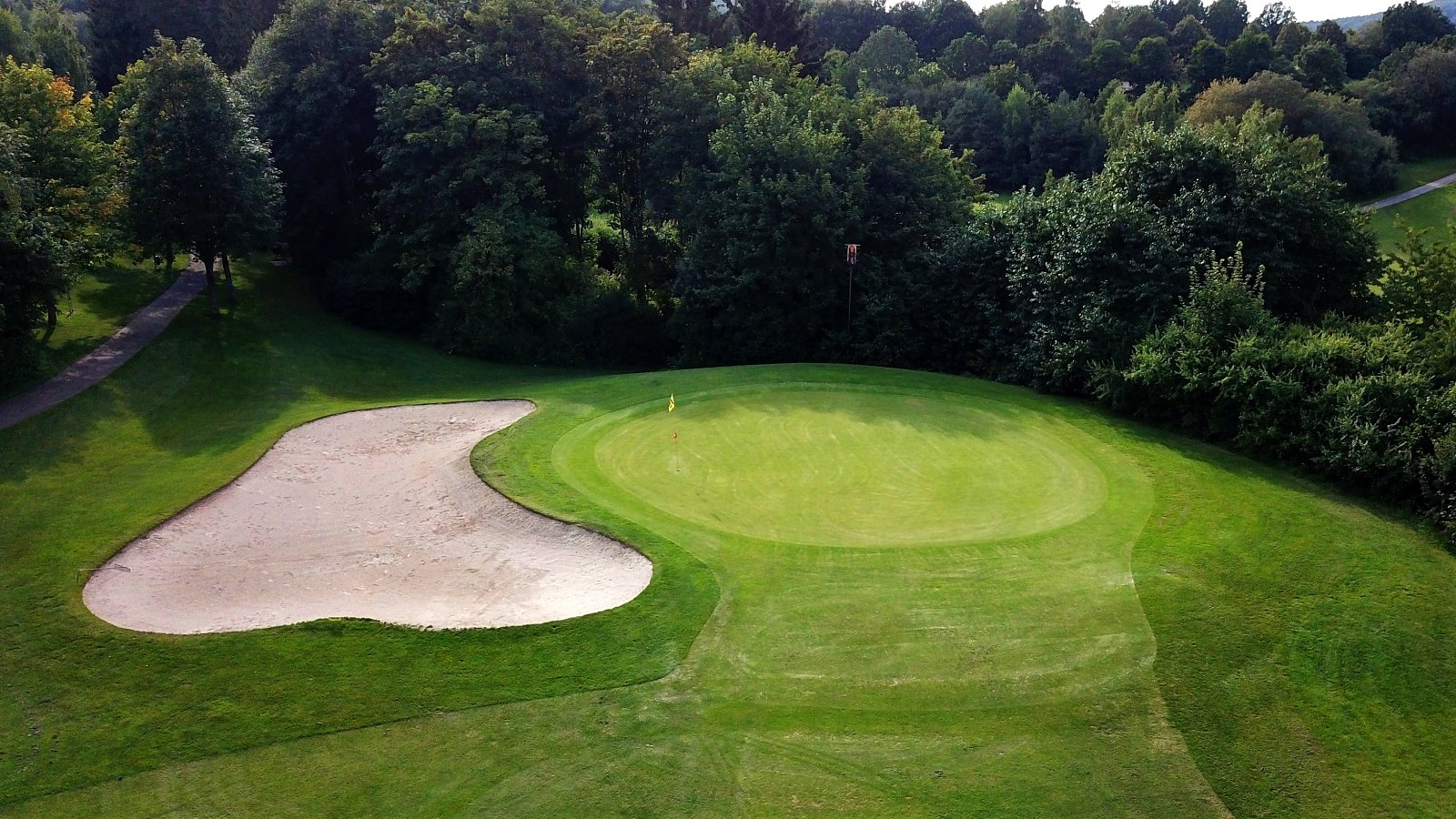 Der Fairwayschlag bis aufs Grün gelingt meist nur geübten Golfern. Deshalb spielt man in der Regel den dritten Schlag auf das Plateau-Grün. Links neben dem Grün droht erneut ein Bunker und rechts umrahmt ein Gebüsch das Grün.