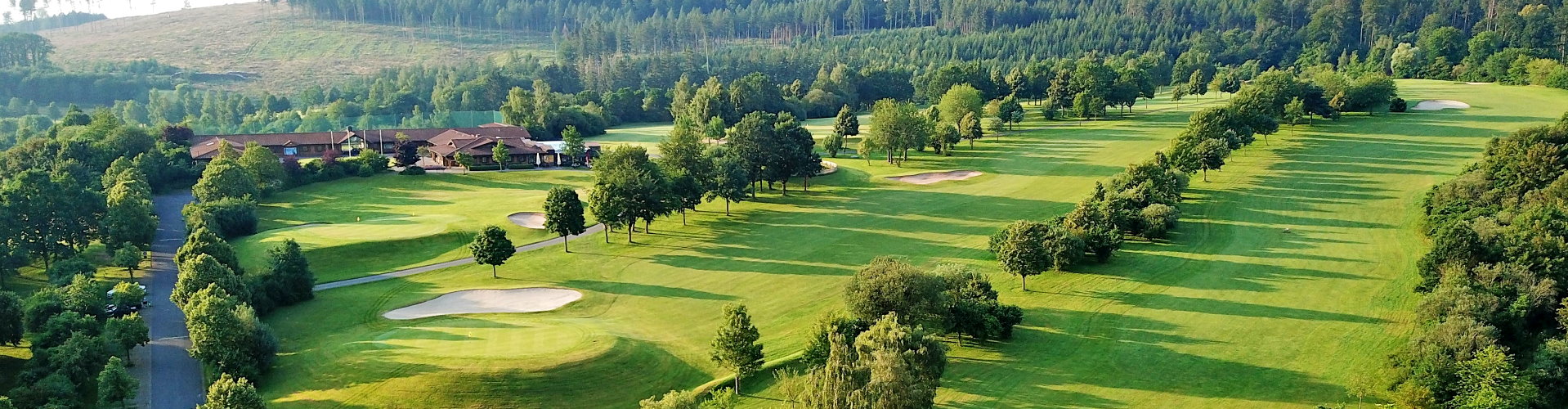 Es geht bergab zurück zum Clubhaus. Longhitter kommen mit Ihrem Drive bis kurz vors Grün. Für alle anderen ist auf der rechten Seite in der Mitte der Bahn ein Bunker angelegt, rechts daneben kommt manchmal sogar das Wasserreservoir ins Spiel.